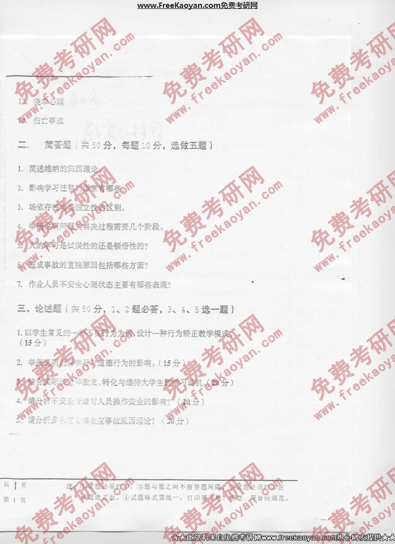 中国地质大学(武汉)2004年考研真题-教育心理学(2)