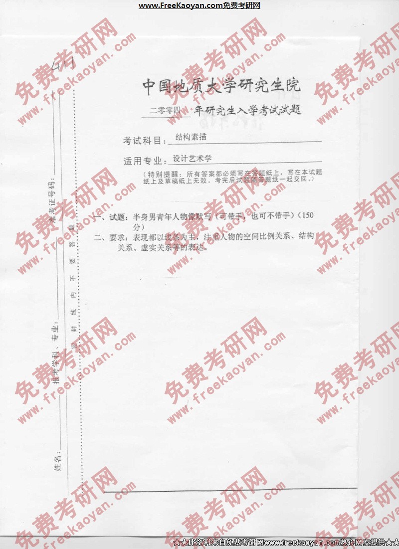 专业课考研经验 本站小编 FreeKaoyan 2018-01-23中国地质大学(武汉)2004年考研真题-环境艺术设计快题(徒手)