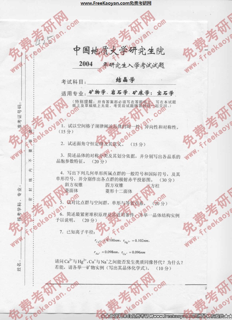 专业课考研经验 本站小编 FreeKaoyan 2018-01-23中国地质大学(武汉)2004年考研真题-结构素描