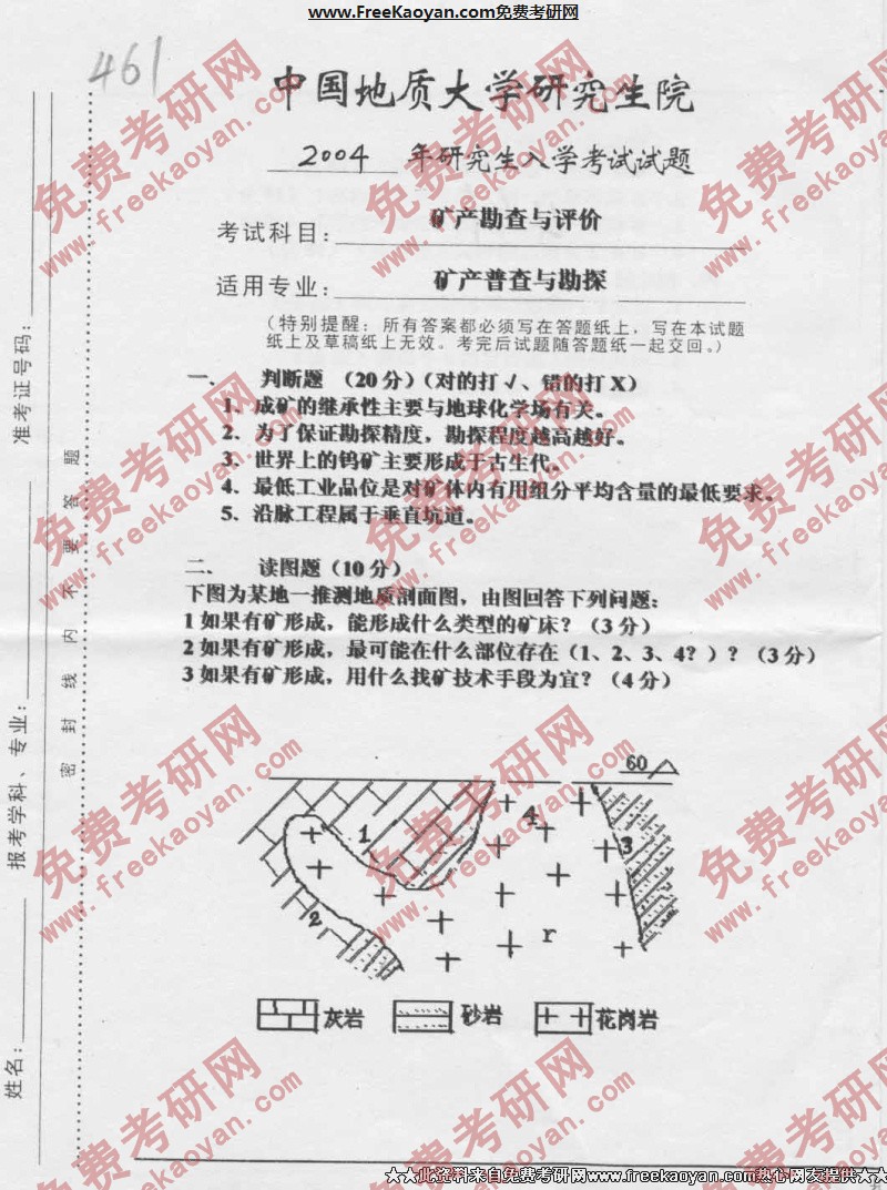 中国地质大学(武汉)2004年考研真题-矿产勘查与评价
