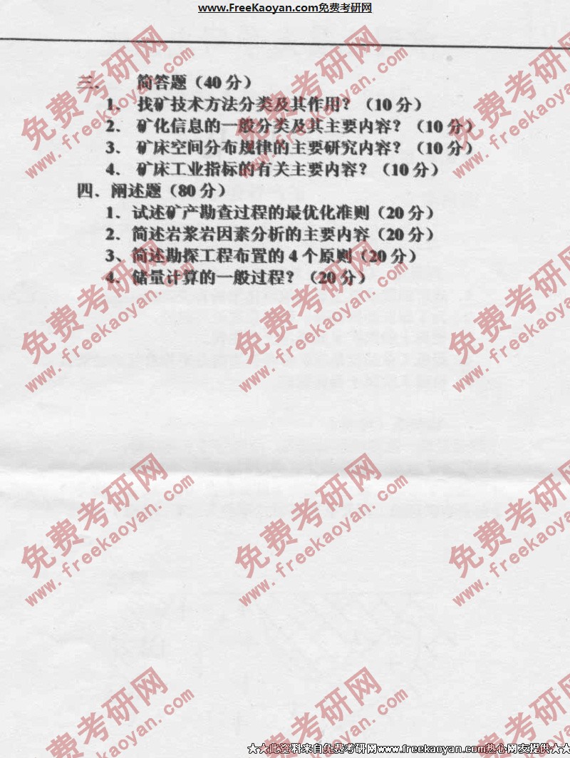 中国地质大学(武汉)2004年考研真题-矿产勘查与评价(2)