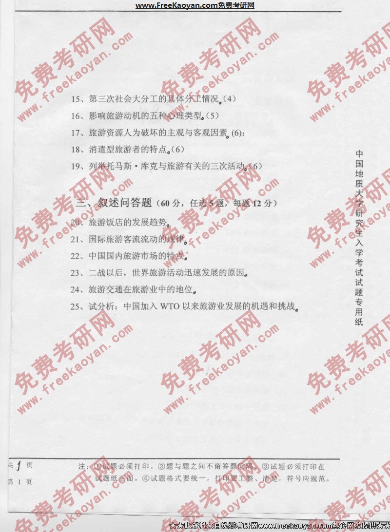 相关话题/考研真题 旅游学 中国地质大学 概论