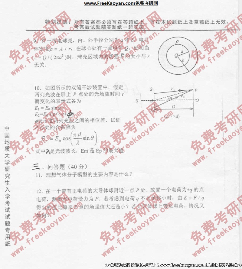 相关话题/考研真题 中国地质大学 普通物理学