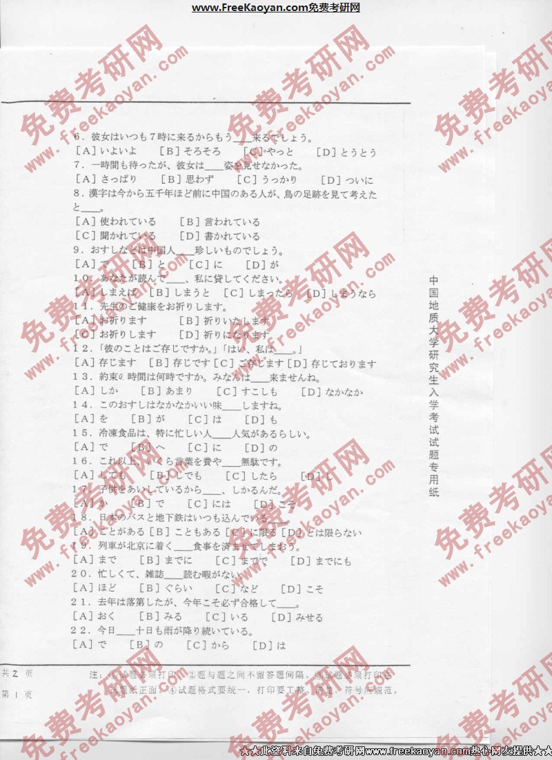 中国地质大学(武汉)2004年考研真题-日语(二外)(2)