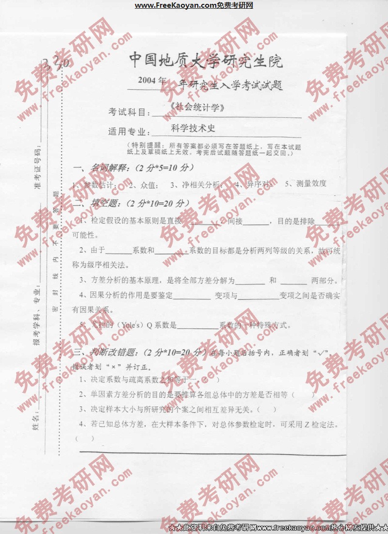 相关话题/考研真题 中国地质大学 统计学 社会