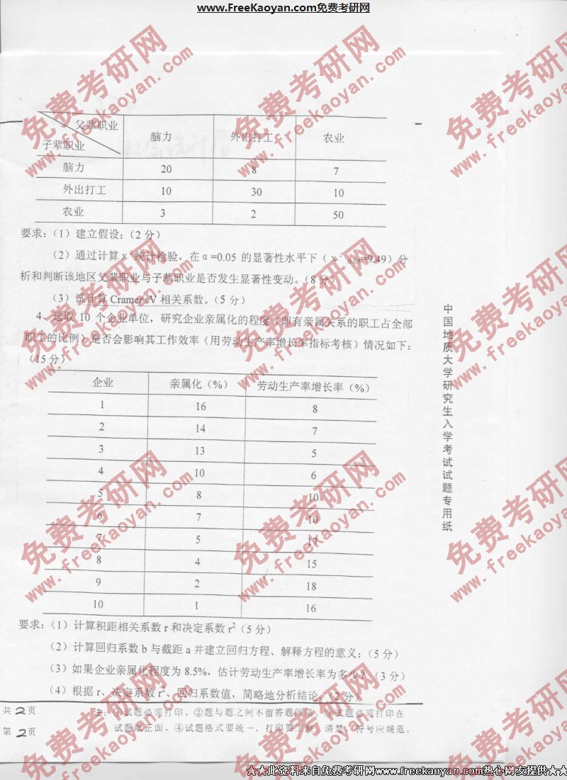 相关话题/考研真题 中国地质大学 统计学 社会