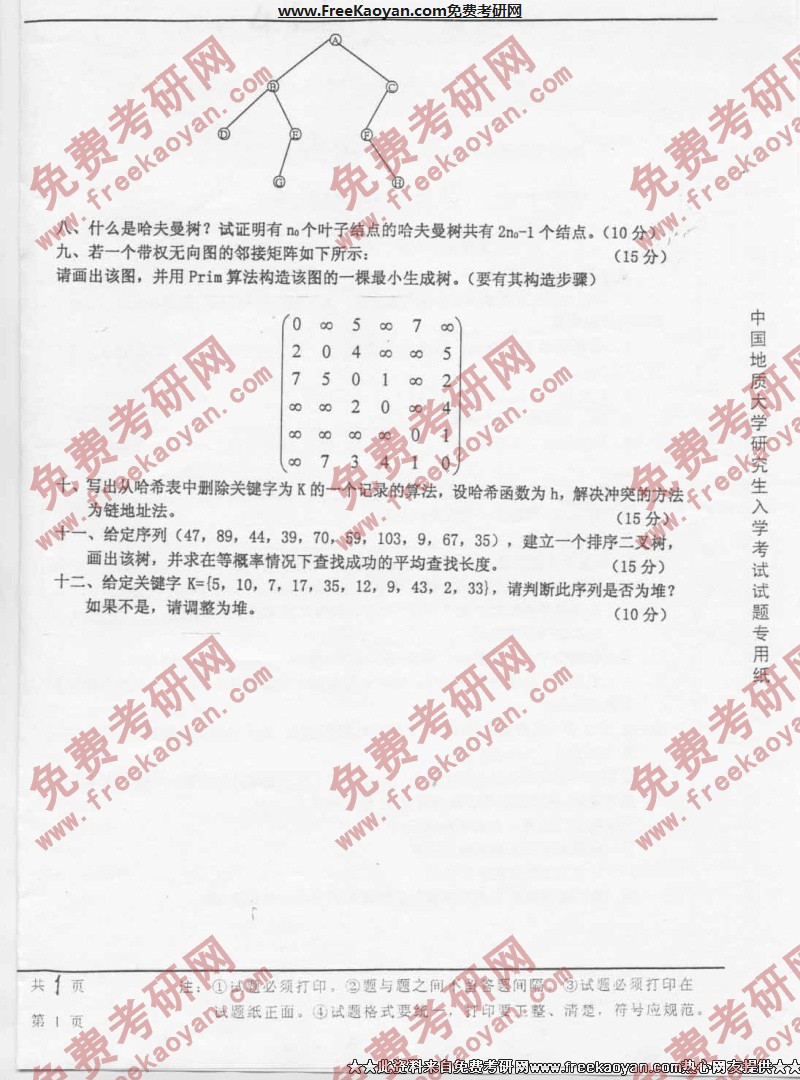 中国地质大学(武汉)2004年考研真题-数据结构(2)