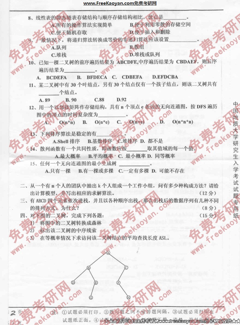 专业课考研经验 本站小编 FreeKaoyan 2018-01-23中国地质大学(武汉)2004年考研真题-数据结构