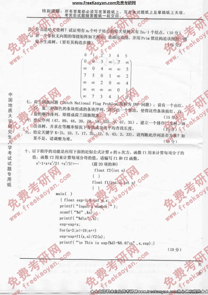 相关话题/考研真题 数据结构 中国地质大学 程序设计