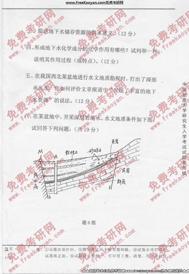 中国地质大学(武汉)2004年考研真题-水文地质学(2)