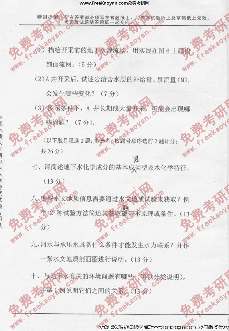 中国地质大学(武汉)2004年考研真题-水文地质学(3)