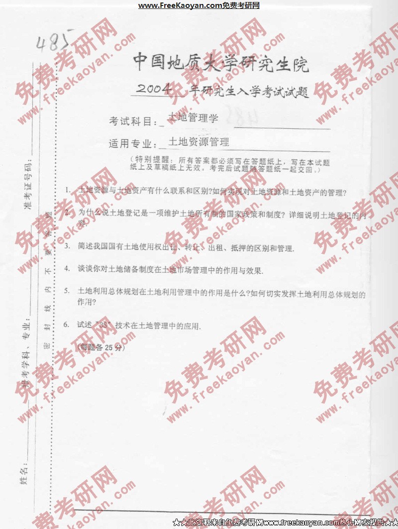中国地质大学(武汉)2004年考研真题-土地管理学