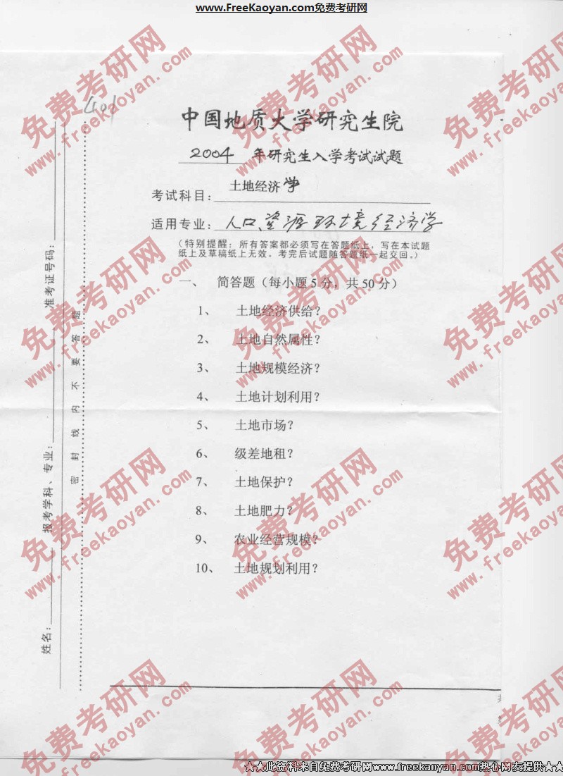 专业课考研经验 本站小编 FreeKaoyan 2018-01-23中国地质大学(武汉)2004年考研真题-土地管理学