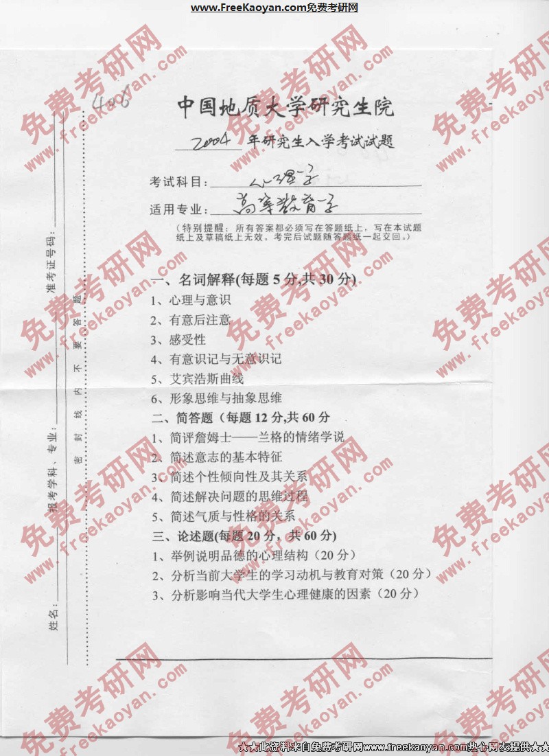 专业课考研经验 本站小编 FreeKaoyan 2018-01-23中国地质大学(武汉)2004年考研真题-思想政治教育学原理