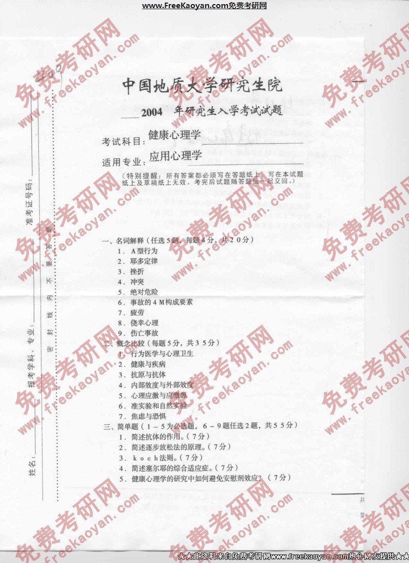中国地质大学(武汉)2004年考研真题-心理学健康