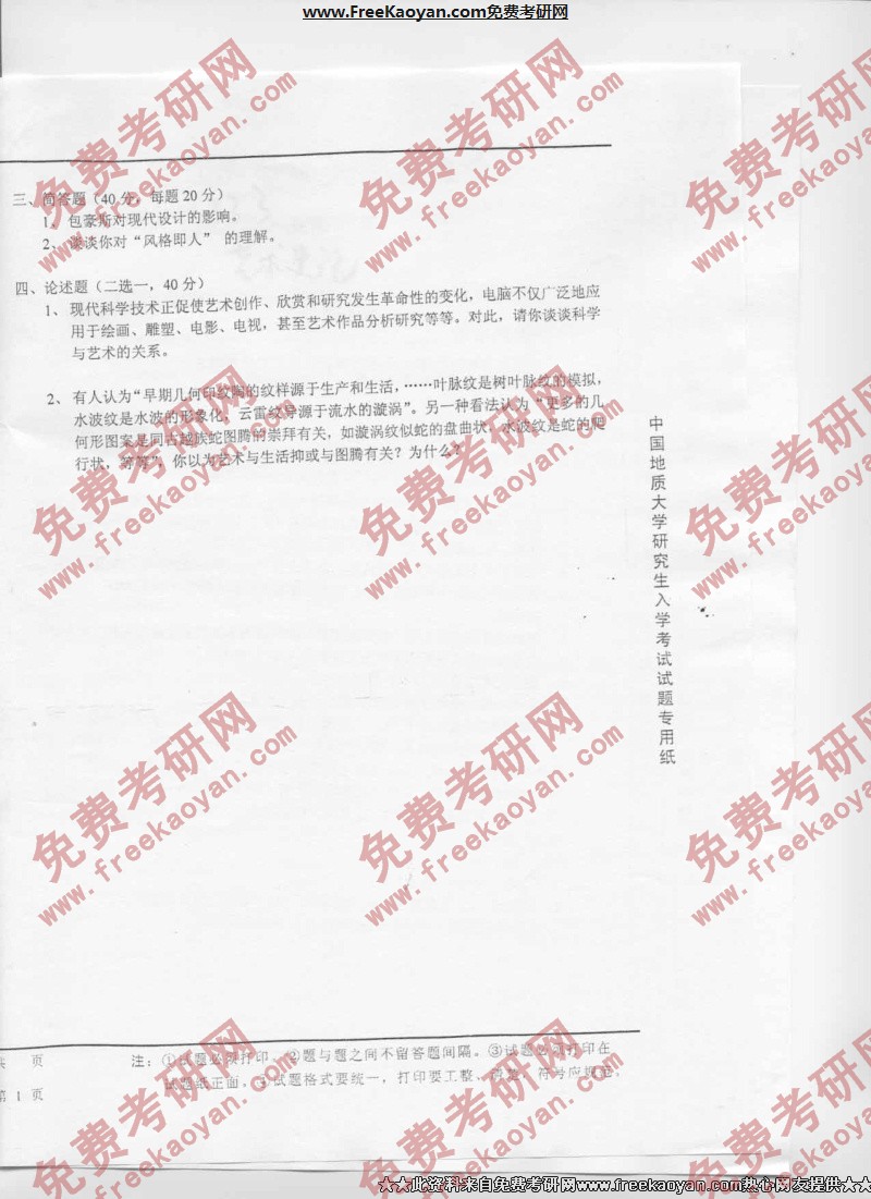 中国地质大学(武汉)2004年考研真题-艺术史论(2)