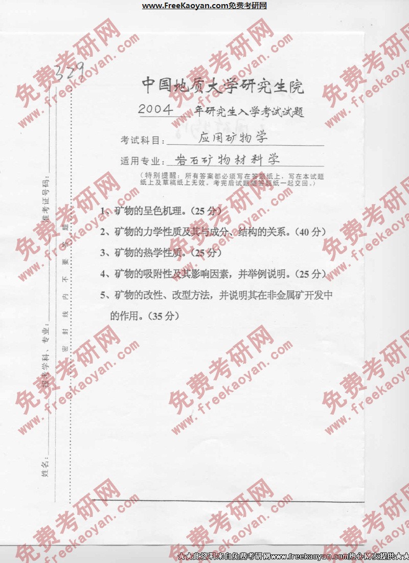 中国地质大学(武汉)2004年考研真题-应用矿物学