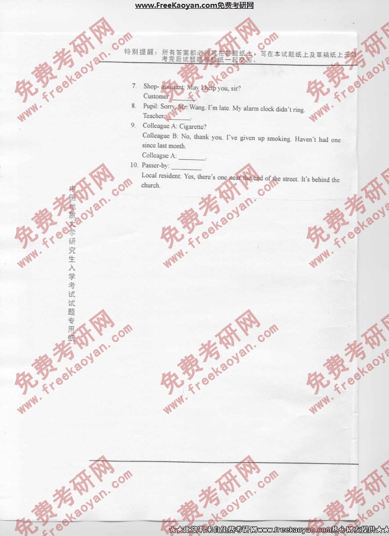 相关话题/考研真题 中国地质大学 综合考试 英语