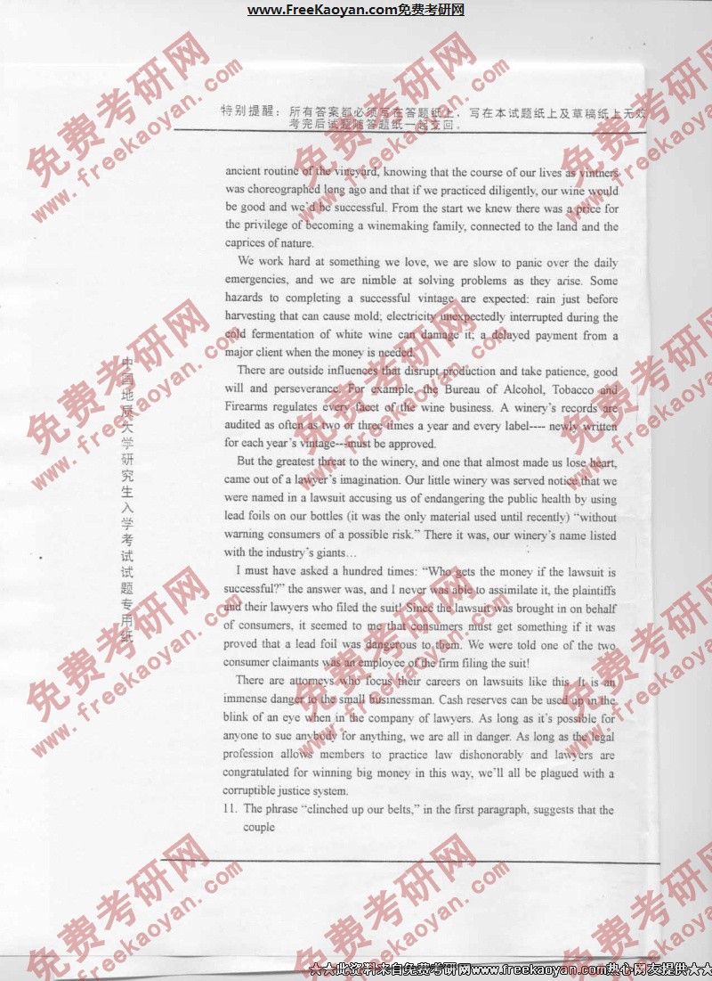 相关话题/考研真题 中国地质大学 综合考试 英语