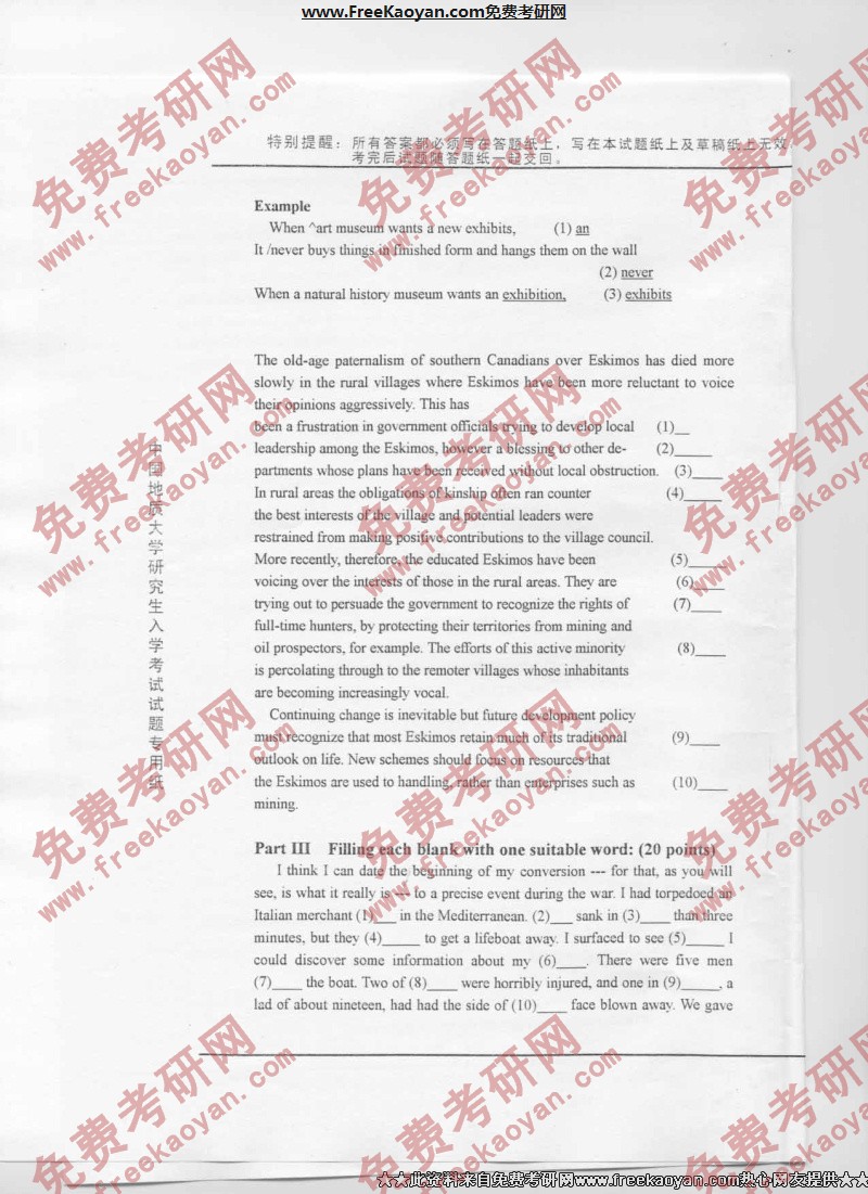 相关话题/考研真题 中国地质大学 综合考试 英语