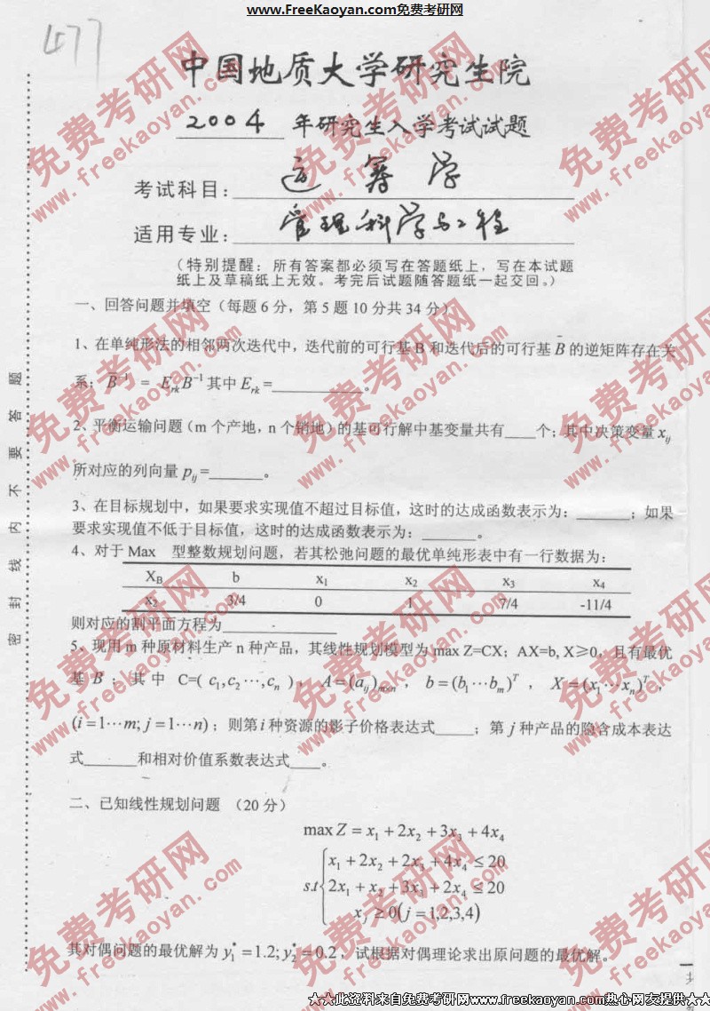 专业课考研经验 本站小编 FreeKaoyan 2018-01-23中国地质大学(武汉)2004年考研真题-行政管理学