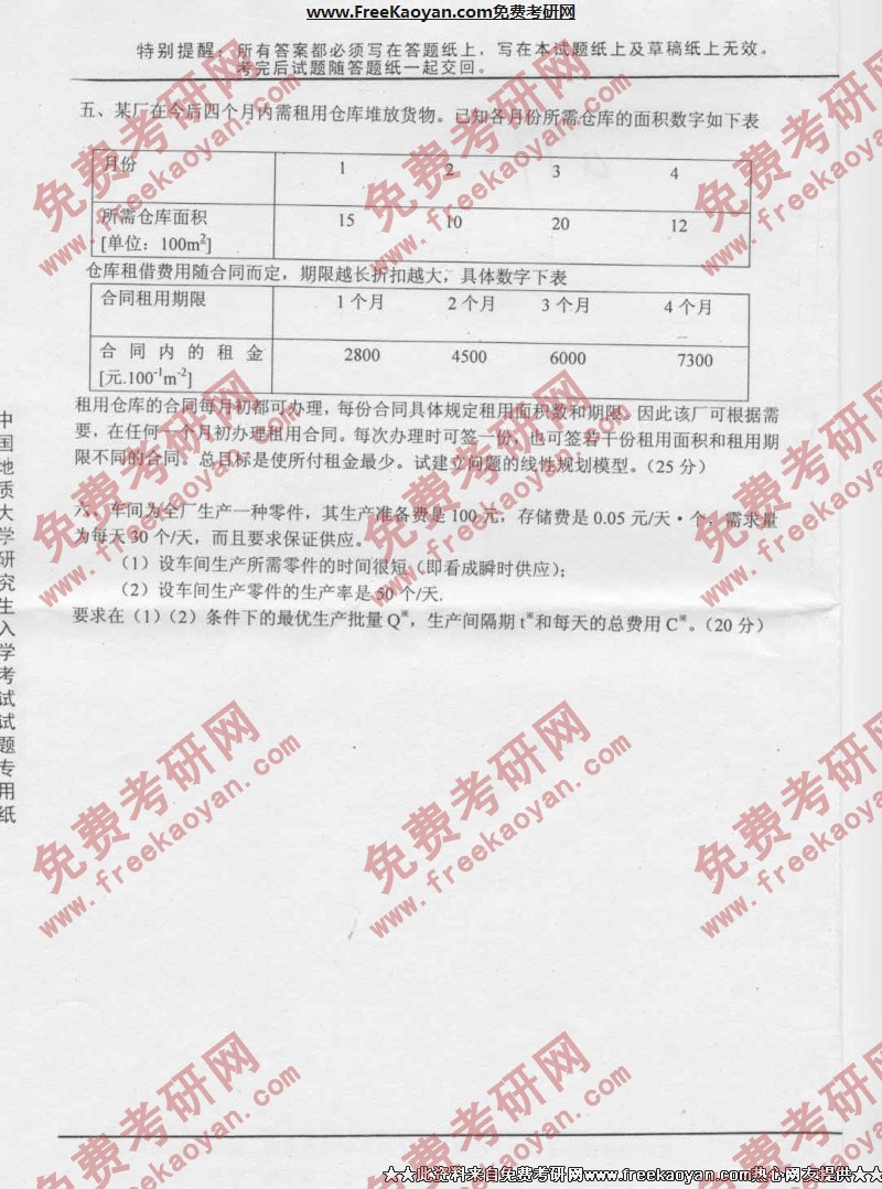 中国地质大学(武汉)2004年考研真题-运筹学(3)