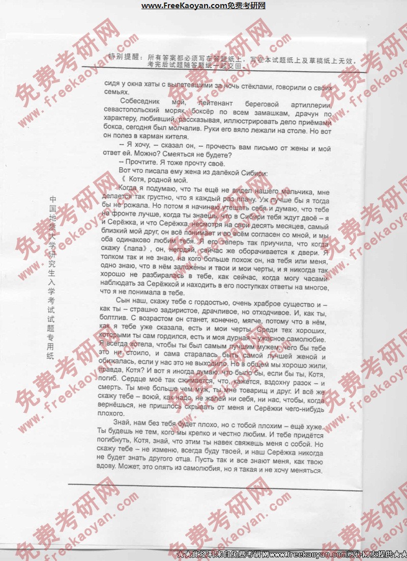 中国地质大学(武汉)2004年考研真题-综合俄语(5)