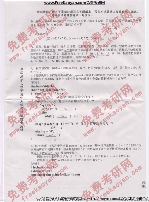 中国地质大学(武汉)2005年考研真题-C语言(资源)(3)