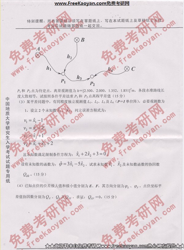 中国地质大学(武汉)2005年考研真题-测量平差(3)