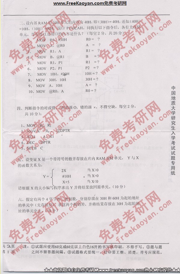 中国地质大学(武汉)2005年考研真题-单片机原理及应用(2)