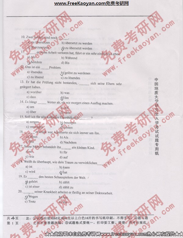 中国地质大学(武汉)2005年考研真题-德语(2)
