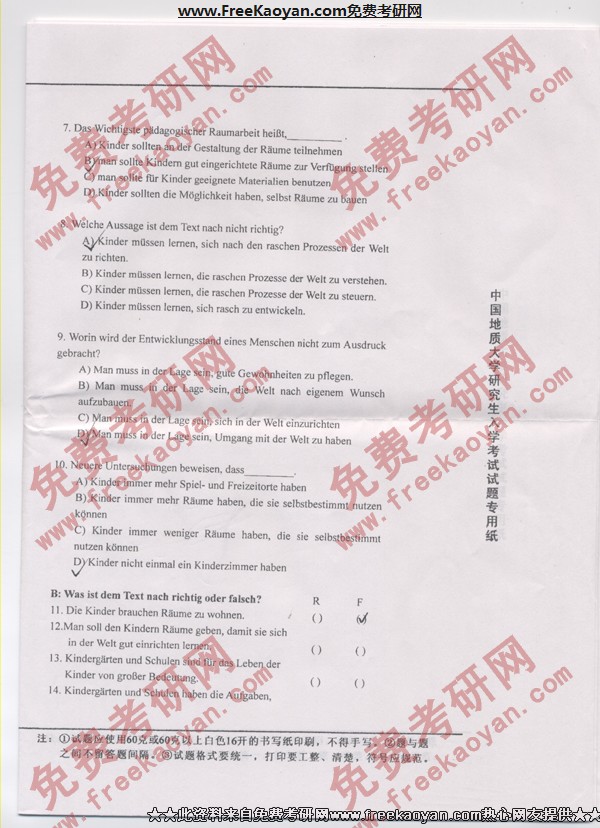 中国地质大学(武汉)2005年考研真题-德语(6)