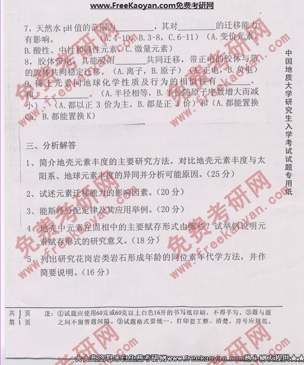 专业课考研经验 本站小编 FreeKaoyan 2018-01-23中国地质大学(武汉)2005年考研真题-宝石学