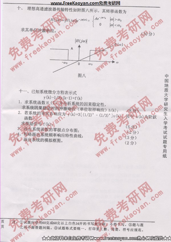 相关话题/考研真题 中国地质大学 信号与系统 电路