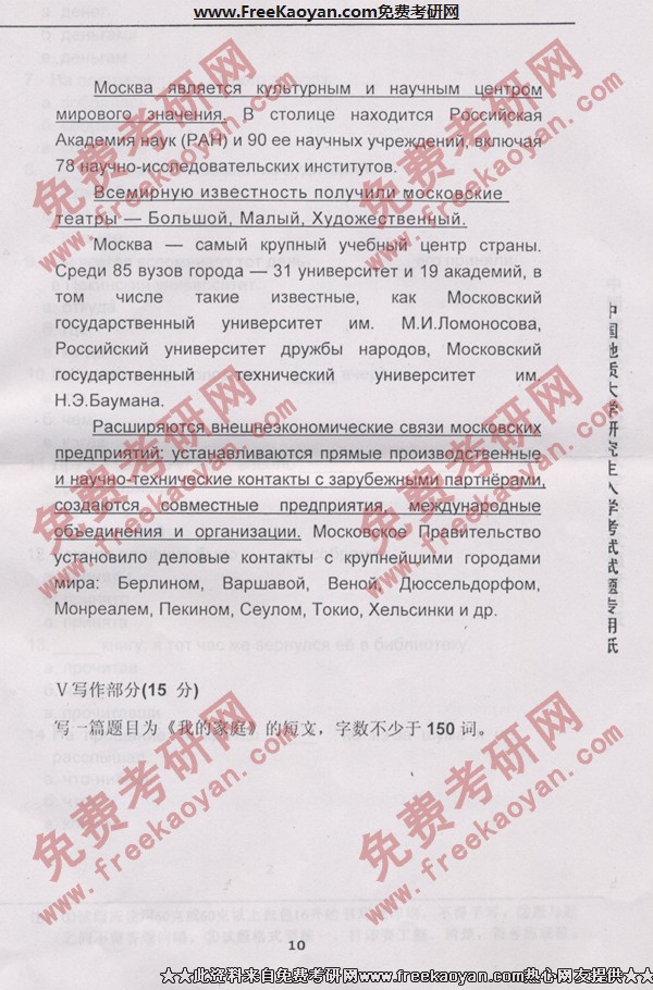 中国地质大学(武汉)2005年考研真题-俄语(10)