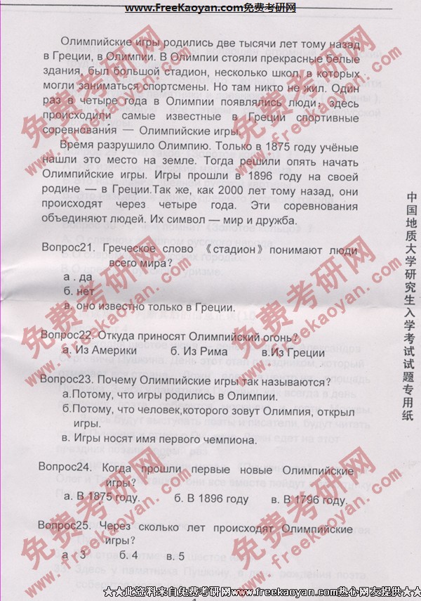 中国地质大学(武汉)2005年考研真题-俄语(4)