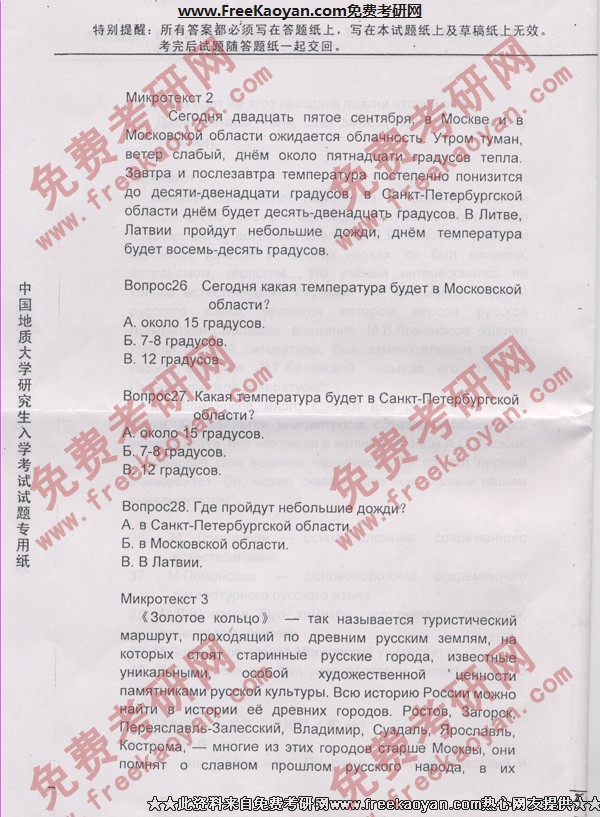 相关话题/中国地质大学 考研真题 俄语