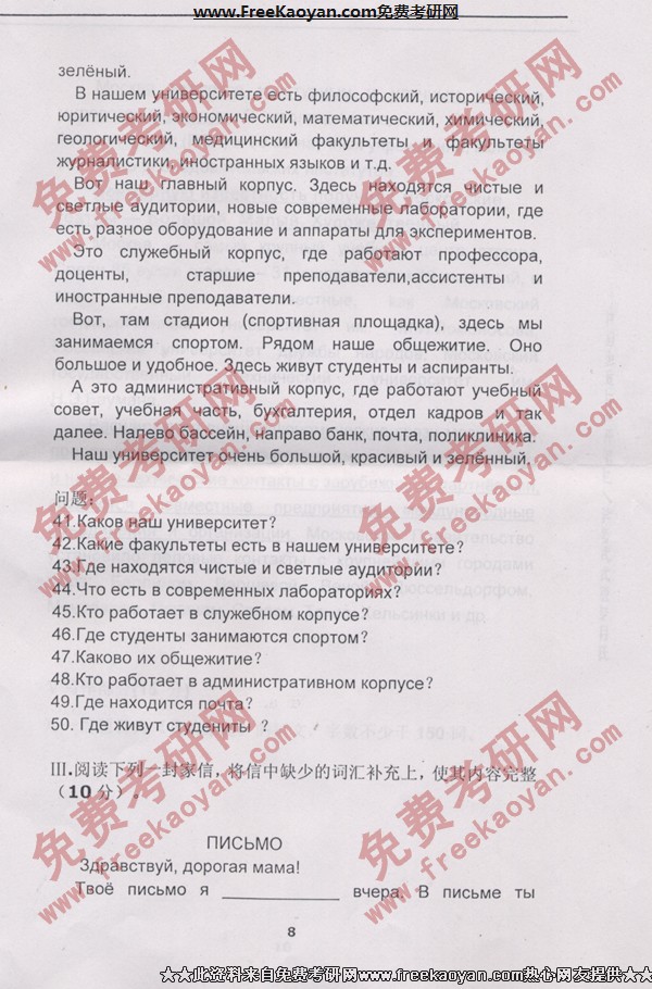 中国地质大学(武汉)2005年考研真题-俄语(8)