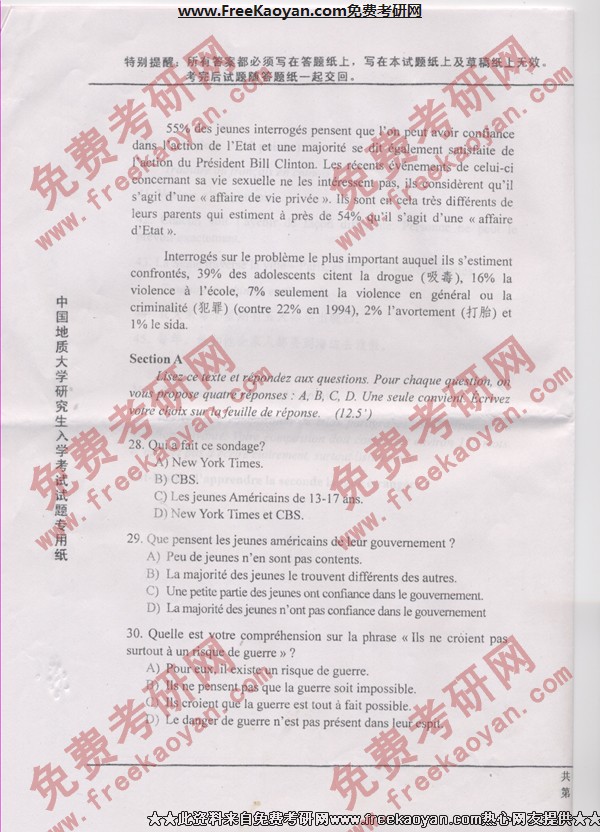 相关话题/中国地质大学 考研真题 法语