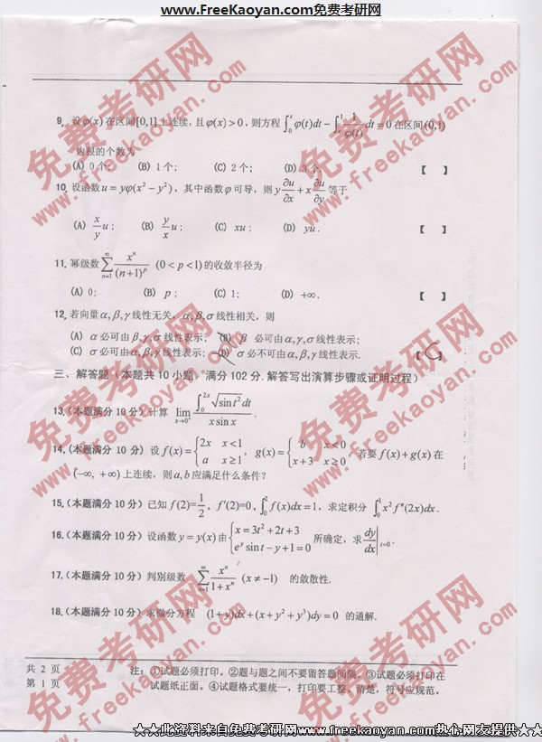 中国地质大学(武汉)2005年考研真题-高等数学(2)