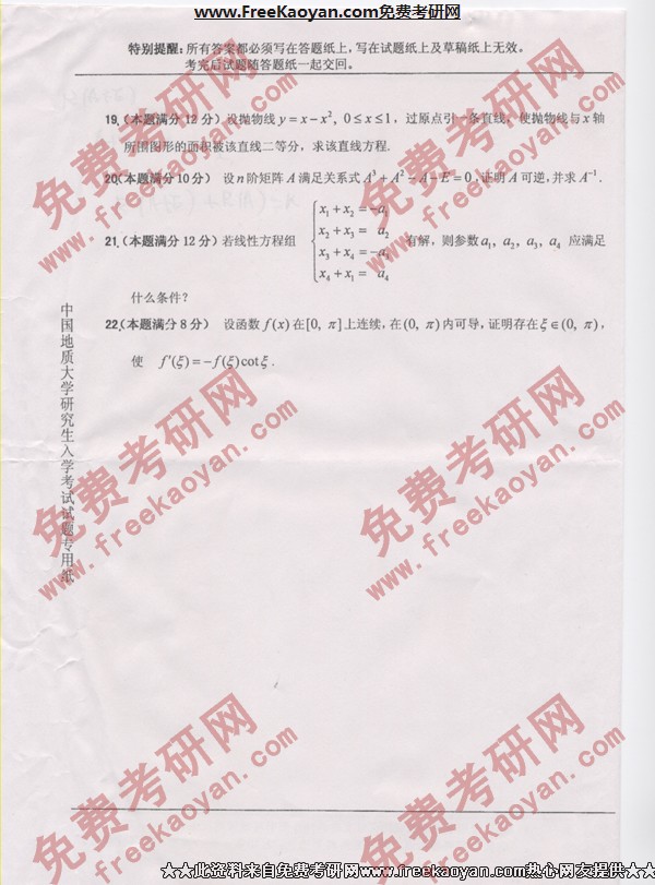 中国地质大学(武汉)2005年考研真题-高等数学(3)