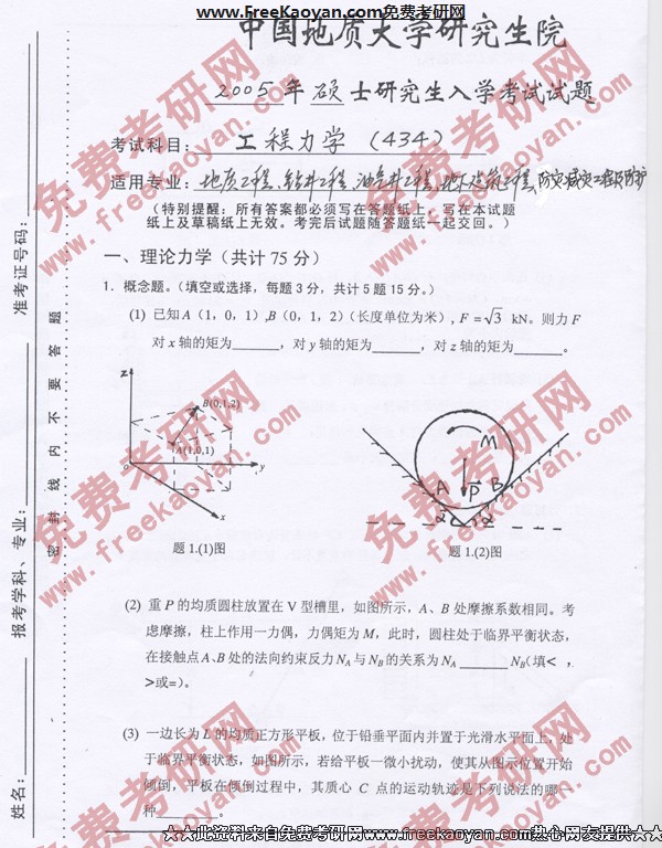 专业课考研经验 本站小编 FreeKaoyan 2018-01-23中国地质大学(武汉)2005年考研真题-工程地质学