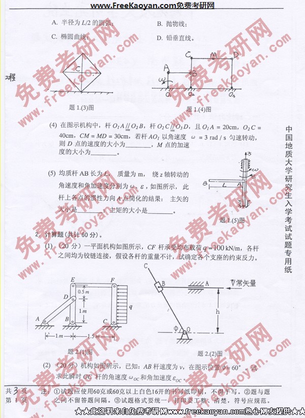 专业课考研经验 本站小编 FreeKaoyan 2018-01-23中国地质大学(武汉)2005年考研真题-动画创作(徒手)