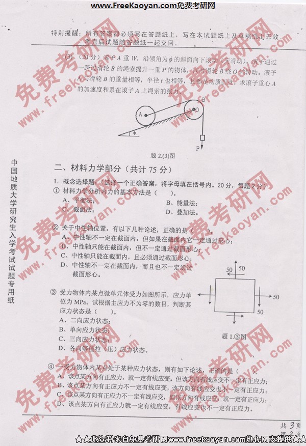 中国地质大学(武汉)2005年考研真题-工程力学(3)
