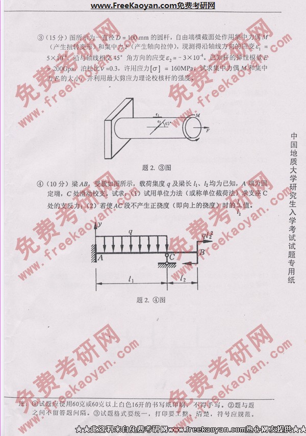 中国地质大学(武汉)2005年考研真题-工程力学(6)