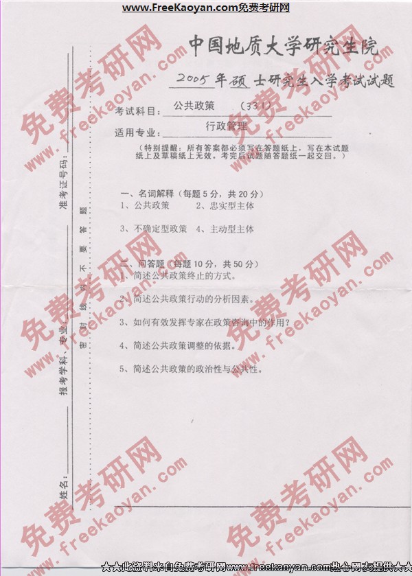 专业课考研经验 本站小编 FreeKaoyan 2018-01-23中国地质大学(武汉)2005年考研真题-地质学基础