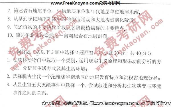 相关话题/考研真题 中国地质大学 史学 古生物