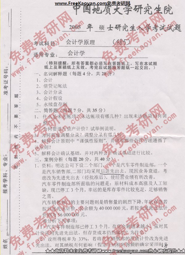 相关话题/考研真题 会计学 中国地质大学 原理