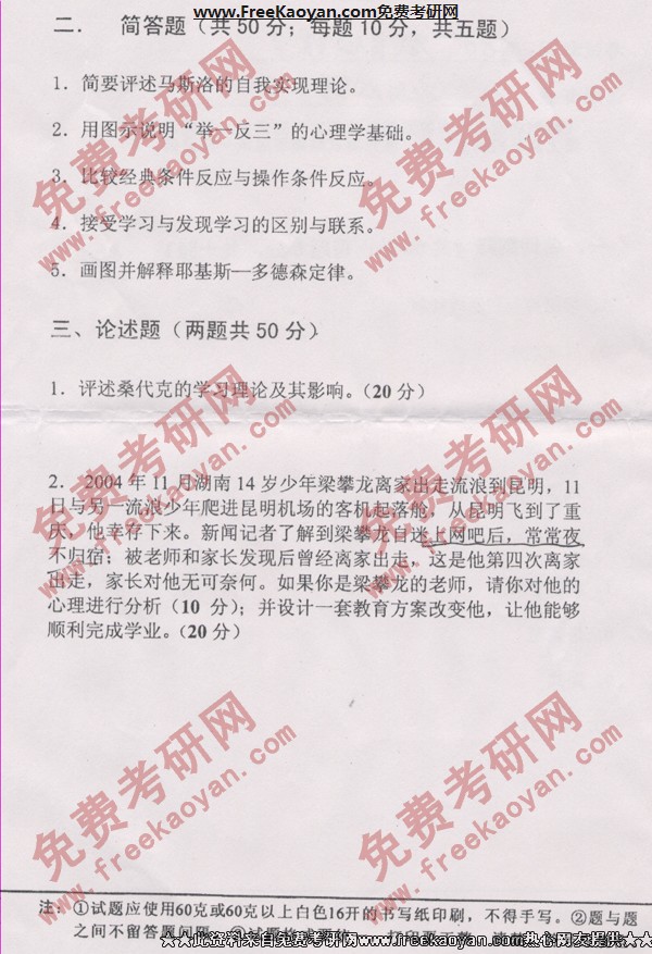 中国地质大学(武汉)2005年考研真题-教育心理学(2)