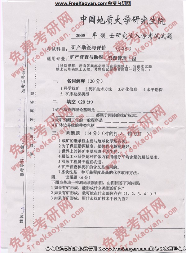 中国地质大学(武汉)2005年考研真题-矿产勘查与评价